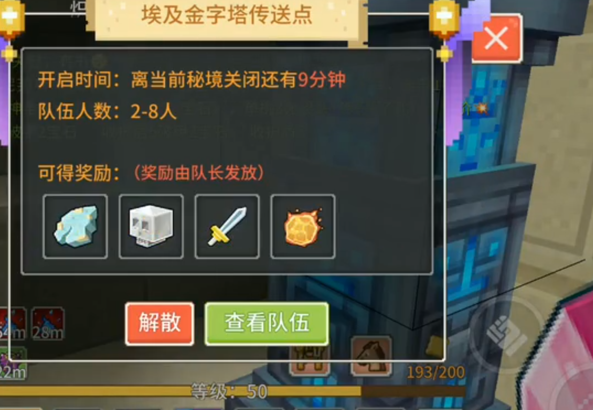 到达目的地后,我们就能看到一个埃及金字塔传送点。它上面显示着开启时间和所需的队伍人数,同时还注明了获得的奖励将由队长负责分发。