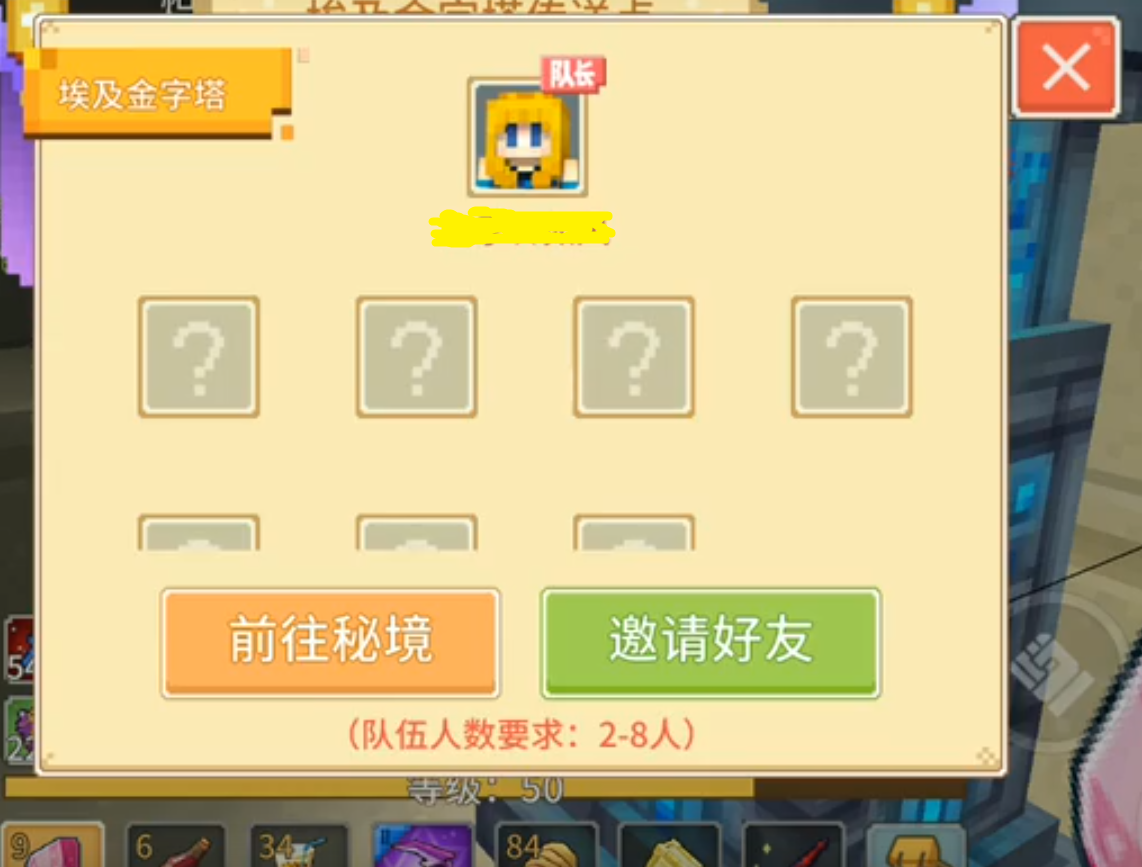 由于人数规定是2-8人,我们就要邀请好友来一起刷怪。