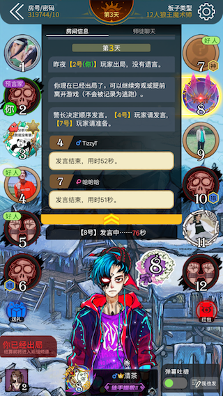 第三天之后,受限于不能连续换人的规则,魔术师可选的操作对象通常已经不多了。这时候我们需要把更多精力放在白天的发言环节,通过分析找出狼人牌并将其公投出局;到了夜晚,魔术师换人的时候则尽量优先选择狼人与好人进行互换操作。