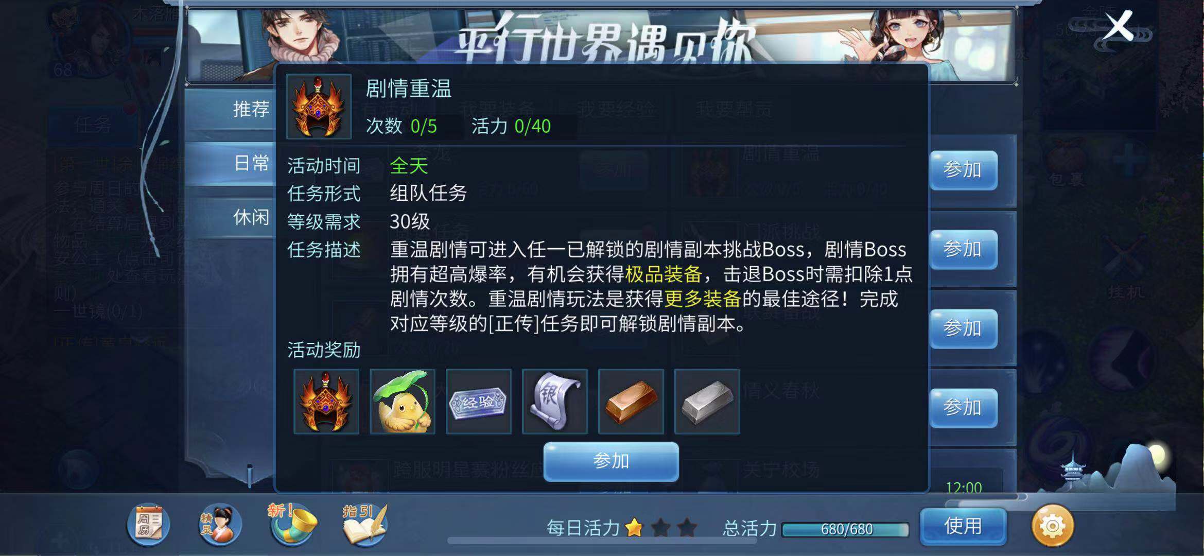 玩家每日可完成十五次剧情重温任务,活动期间前五次剧情重温会给予活力值奖励。需要注意的是,这里的剧情重温并非英雄剧情,玩家只需任意进入一个剧情并完成,即可获得活力值。通过这种方式,玩家每天最多能获取四十点活力值,换算下来每次剧情重温可得到八点活力值,这是相当可观的活力收益,玩家务必把握好这个机会。