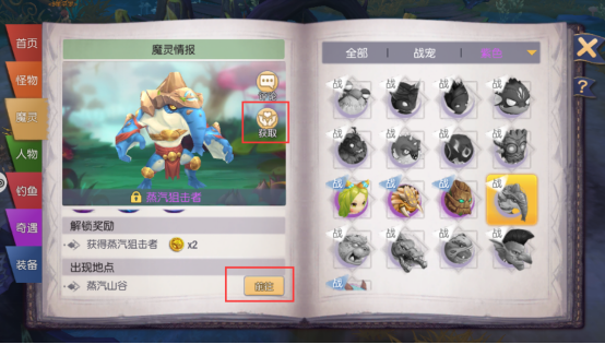 这段奖励来自《塞尔之光》里的魔灵收集任务系统。在游戏中,玩家每解锁一个新的魔灵,都能拿到对应的奖励。而且游戏里的魔灵设定并不复杂,目前版本一共只有16个。