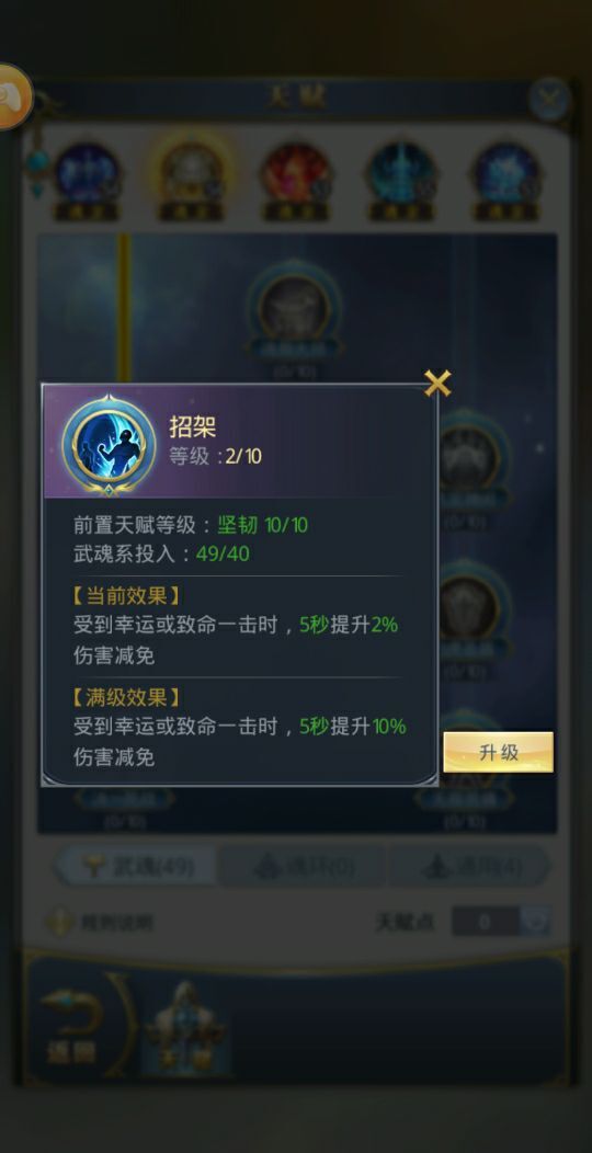武魂页的基础天赋防御姿态建议点满,魔戒之力只要获得就优先加点,这个天赋和装备关联紧密,玩家可依据自身实际情况来决定。魂力屏障方面,小编推荐加五点,因为只有加到五点才能解锁意气风发的加点选项。考虑到白虎的定位以肉盾为主,所以这里建议大家把意气风发点满,这样能为玩家提供大量的生命值加成。