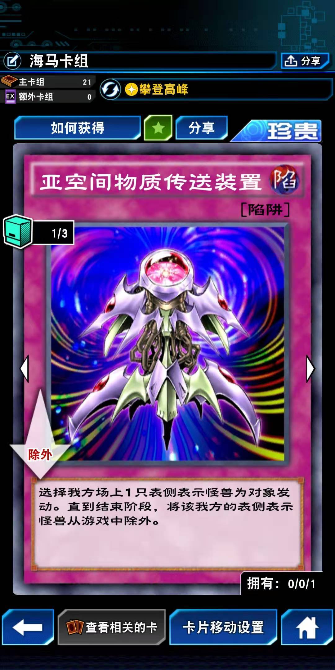 亚空间物质传送装置是用于守护我方场上特定怪兽卡的卡牌。举例来说,若玩家场上表侧表示的某只怪兽在下一回合有其他用途,可敌方回合已发起攻击时,为了保全这只怪兽,玩家能将其除外直到结束阶段。不过在使用这张卡前,玩家需留意自身血量是否能扛住怪兽的直接攻击,或是场上是否有其他怪兽可抵挡这次进攻。