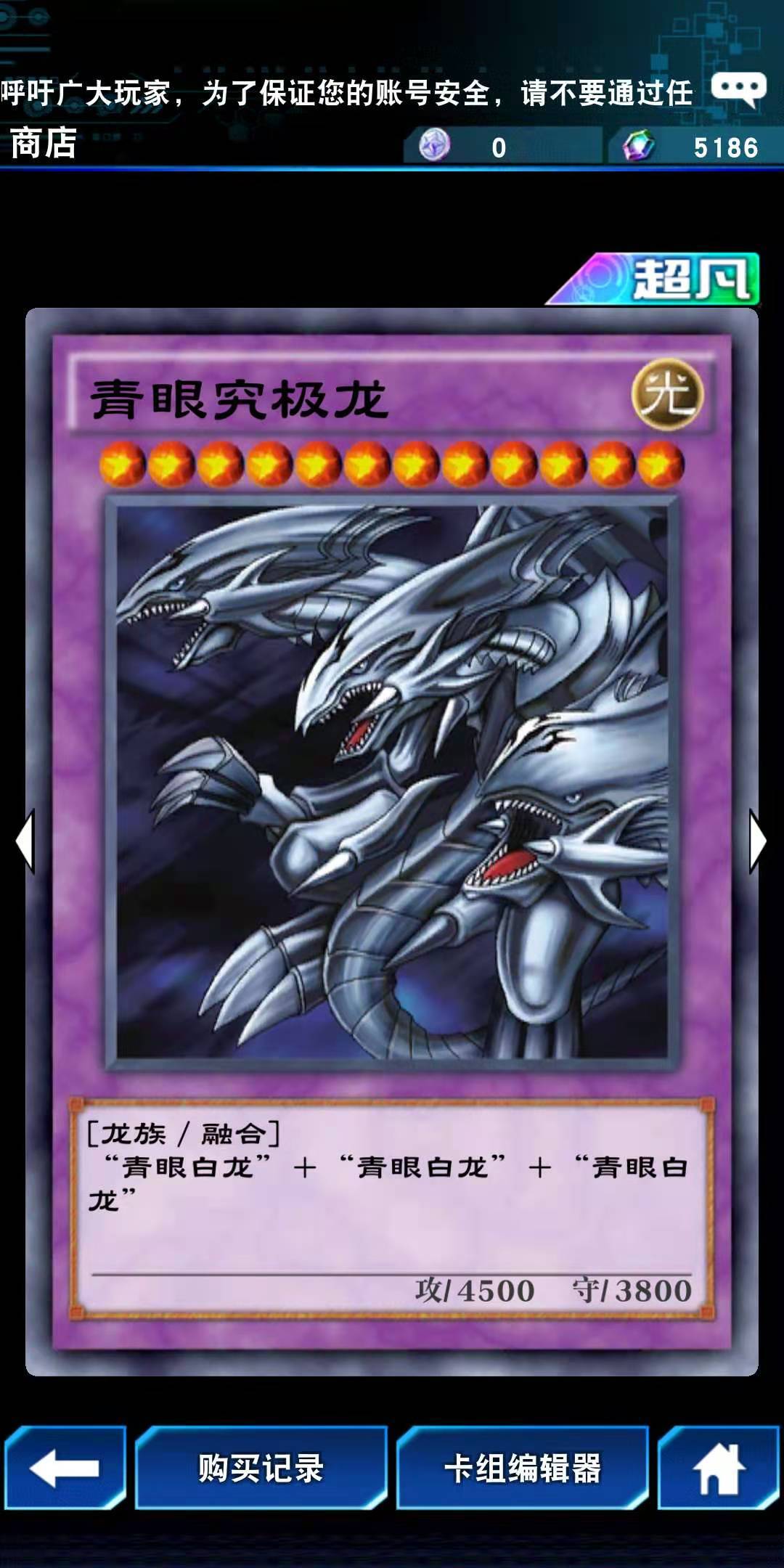 青眼究极龙是由三只青眼白龙融合而成的怪兽,作为海马濑人的代表卡之一,有必要加一张在融合卡组中。