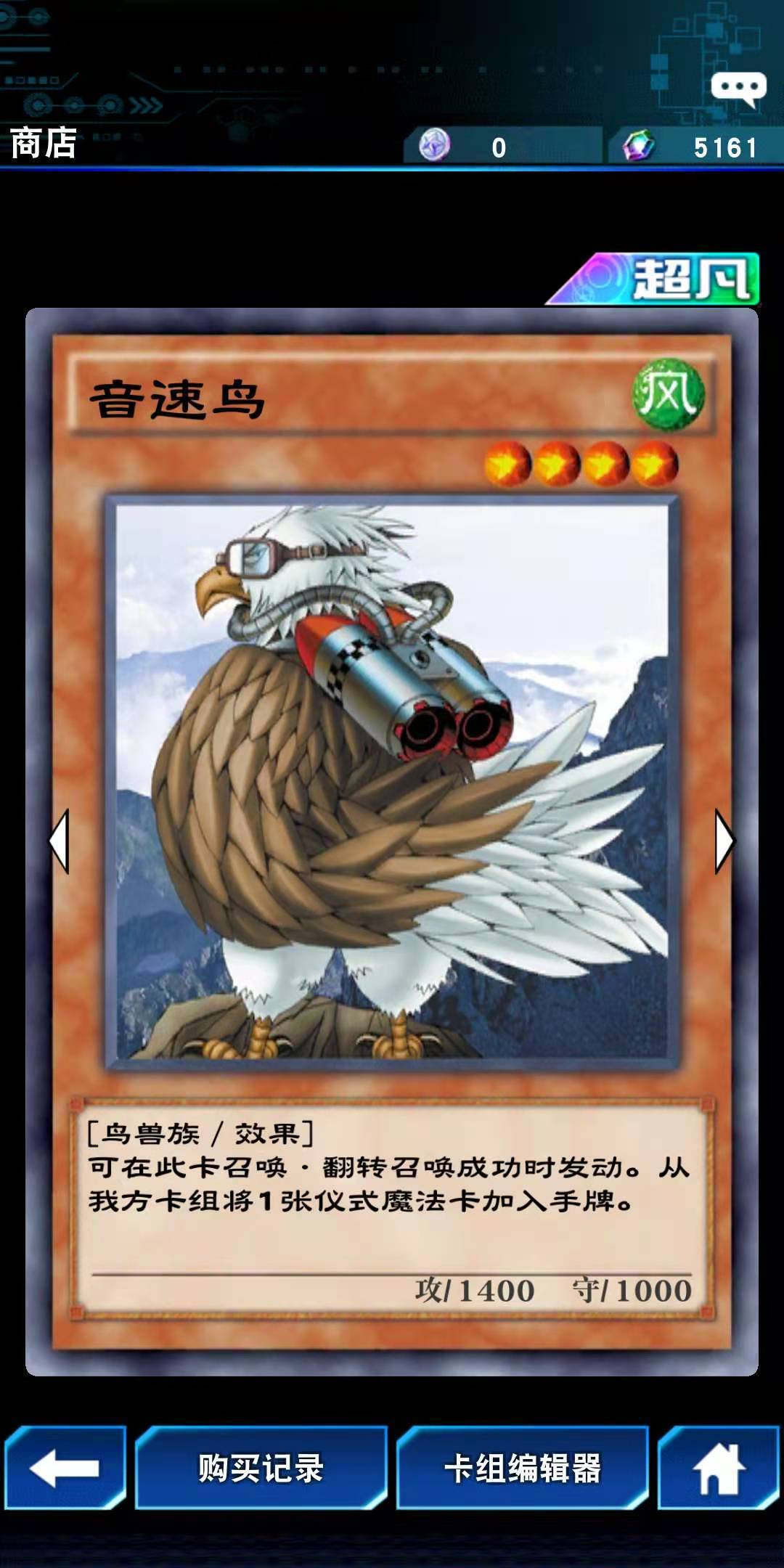 音速鸟是仪式怪兽卡组玩家不可或缺的速攻卡牌。当这张卡召唤成功后,能从我方卡组精确检索一张仪式魔法卡并加入手牌,显著加快玩家召唤仪式怪兽的节奏。