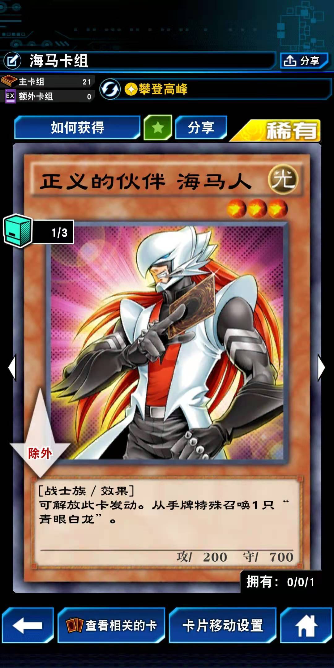 正义的伙伴海马人能够快速从手牌召唤青眼白龙,这张牌和青眼白龙是卡组必备牌之二。海马人建议下1-2张,青眼白龙必下3张。