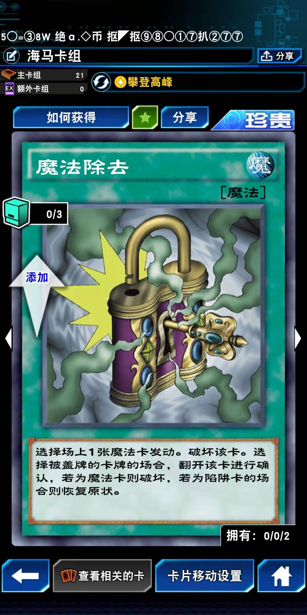 魔法除去这张卡主要是针对敌方的魔法卡设计的。考虑到仪式怪兽的召唤流程相对复杂,需要满足不少条件,玩家可以在自己的卡组里放入魔法除去,以此避免敌方用魔法卡干扰己方召唤仪式怪兽的过程。同理,像拆陷阱这类功能相似的卡牌,也能起到清除敌方陷阱卡的作用。
