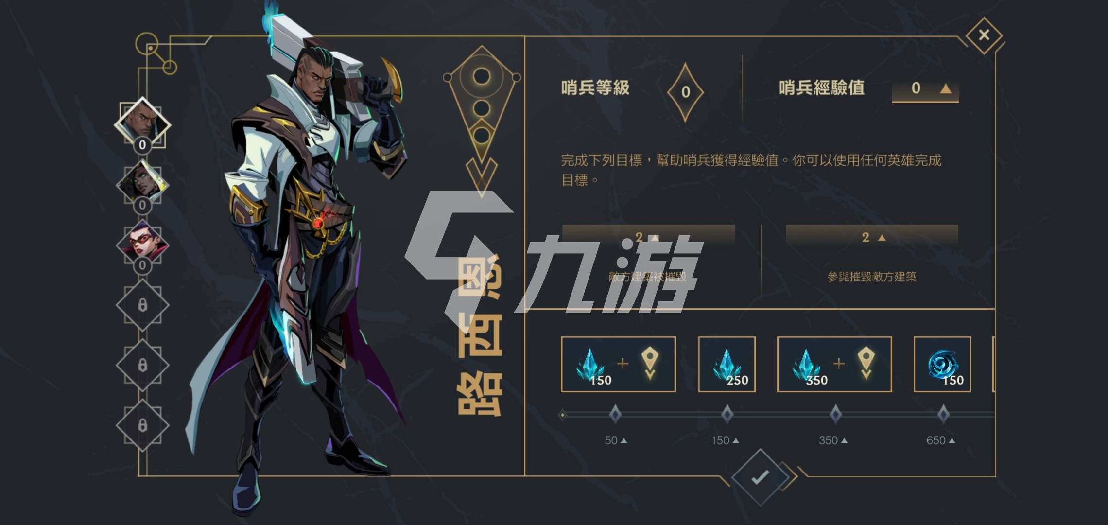 路西恩获取经验的方式是这样的:每当有1个敌方建筑被摧毁,他就能获得2点经验值;如果他参与了该建筑的摧毁过程,还可以再额外获得2点经验值。