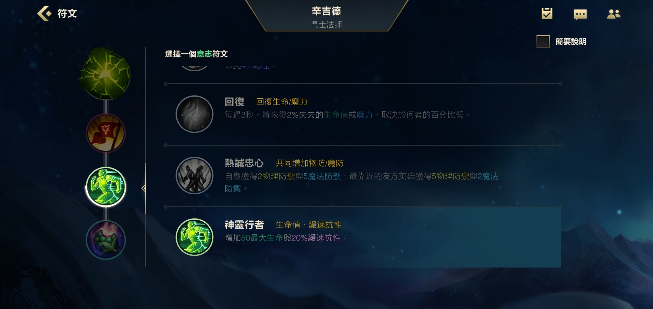 第二个副系天赋适合点选神灵行者,它能为炼金增加50点基础生命值上限,不过更核心的价值在于提供20%的减速抗性——毕竟炼金是依赖机动性拉扯团战的英雄,减速抗性对他而言尤为关键。