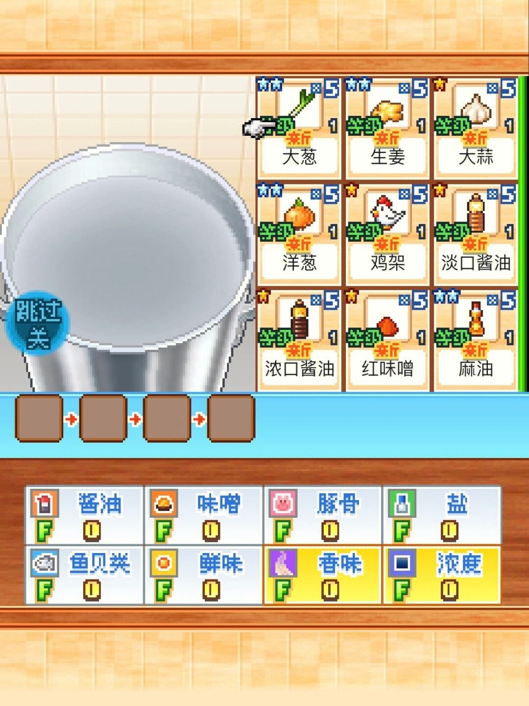 这个搭配方法需要用到经过3遍加工的鸡架、4遍加工的大蒜、2遍加工的生姜,还要加入经过两遍加工的背脂素,最后用大蒜收尾。这样的搭配能够形成协同效果。