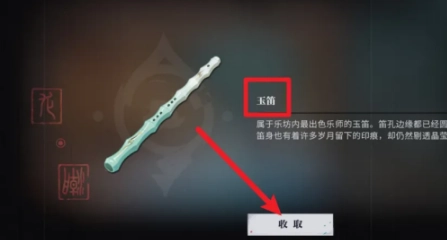 3、最终,当玩家开启道具栏后,点击“领取”按钮,即可成功获取玉笛。