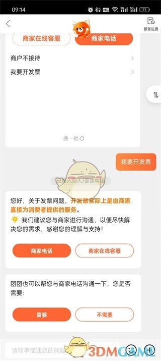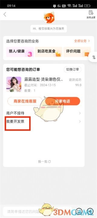 3、随后进入客服页面,既能够输入【我要开发票】,也可以点击相应选项。