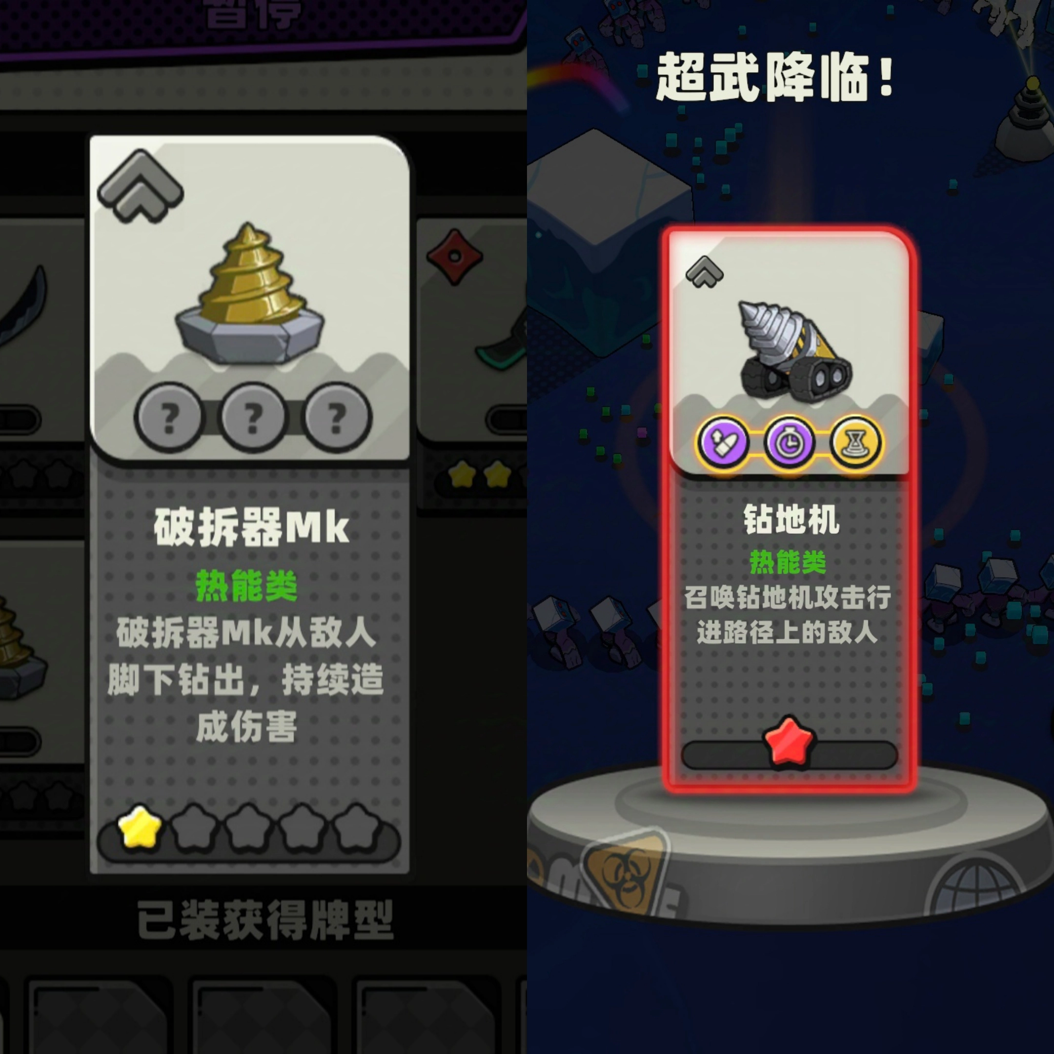 超武形态呈现为钻地机。通过召唤钻地机,对其攻击路径上的敌人展开攻击。