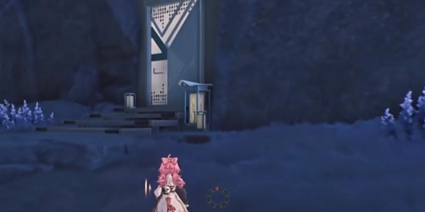 7、返回至下图标记的信标处,顺着海岸线向北行进,抵达下图所示的门前,通过交互进入密室。