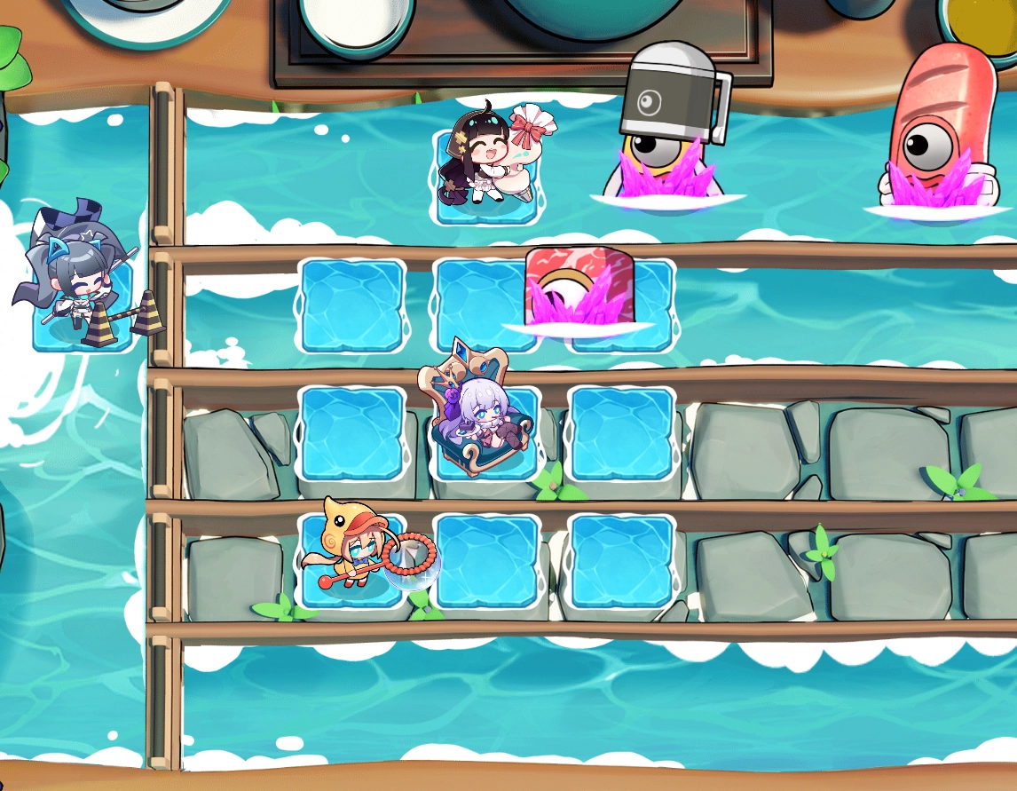 此角色隶属于寒冰系列,对寒潮具备极强的抗性。发动攻击时,会大幅提升寒冷值。当于流水世界施展奥义之际,会在自身周围3*3的范围以及所有非水系角色所处位置,生成浮冰地板。