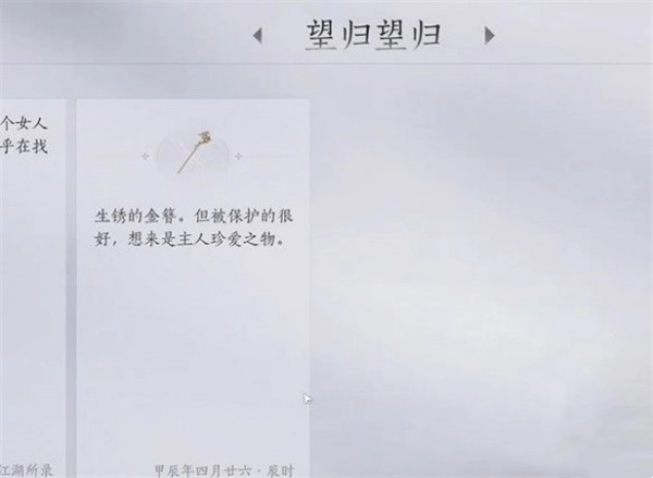1、玩家首先要推进主线剧情,通过击败无颜获取掉落的一个金簪。
