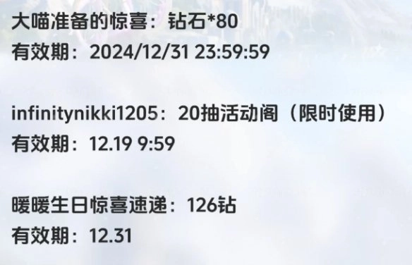 【兑换码:暖暖生日惊喜速递】钻石*126