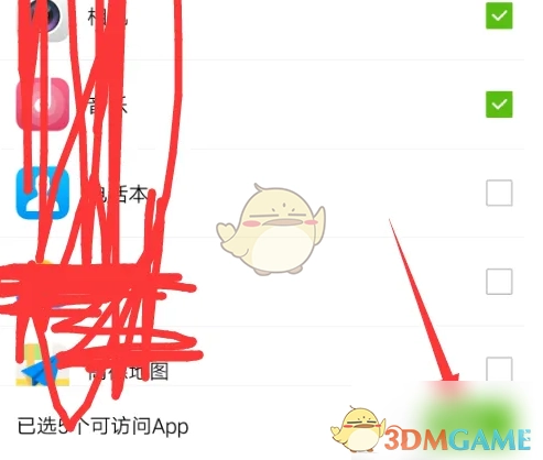 6、进入APP选择界面,在勾选完可访问的APP后,点击“确定”,具体操作参照图示。