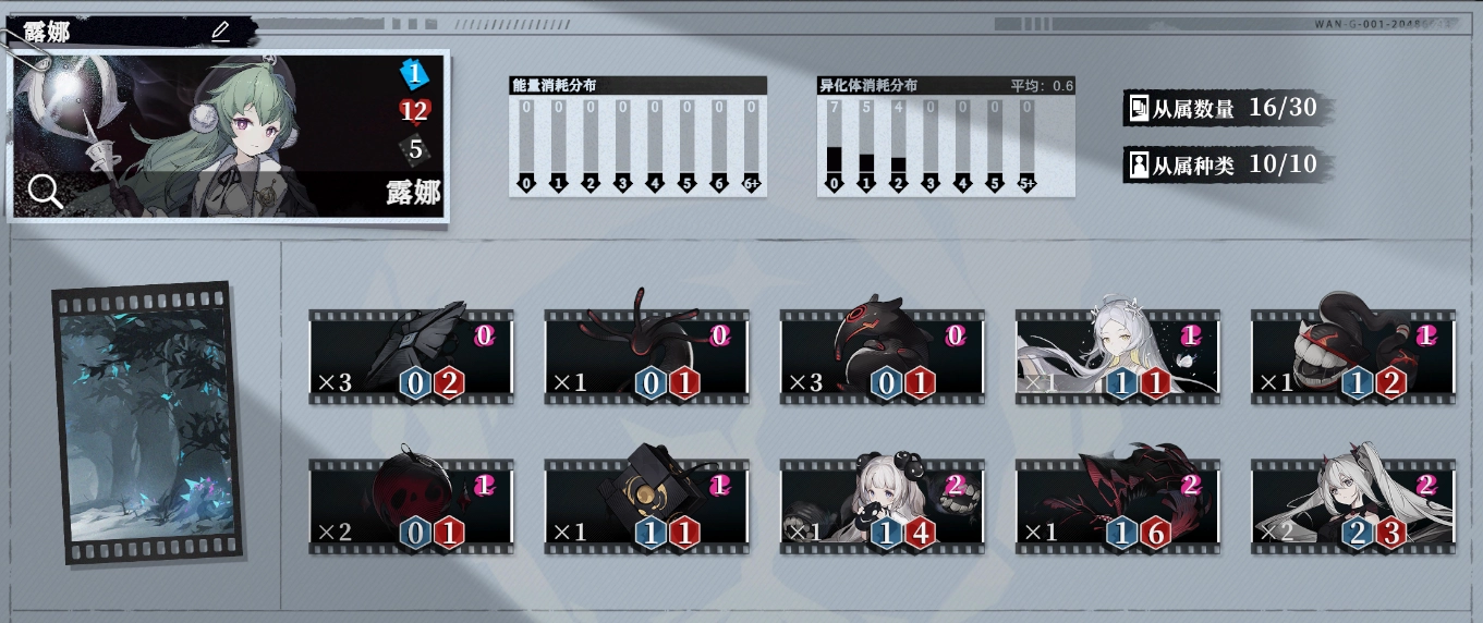 灰群系列与愫络合系列相互搭配,二者皆归属于[福利院]阵营,种族同为[异化体]。在该编组内,多数从属能够依据“异化体”这一特性获取属性增强,而且还能够借助各类简易条件,得到更多零消耗的异化体从属。