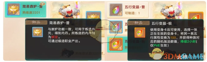 3、极品:把指定的五行属性转变为100 ,进行制造时所需熟练度为8401。