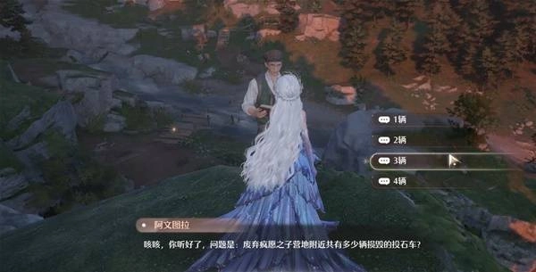 和阿文图拉对话并回答问题,答案是【3辆】。在这里要从低处踩着树叶弹跳上来,到了那附近可要留意观察呀~