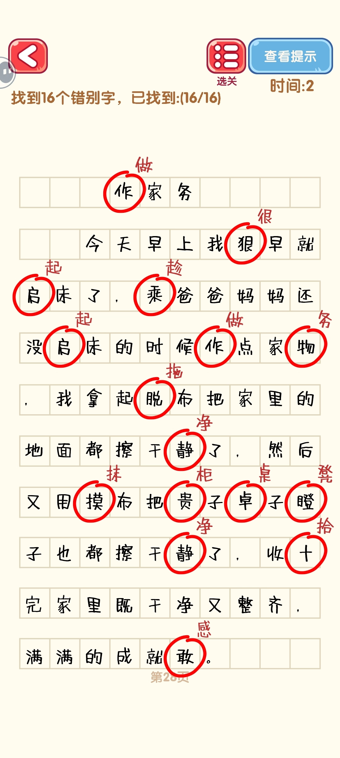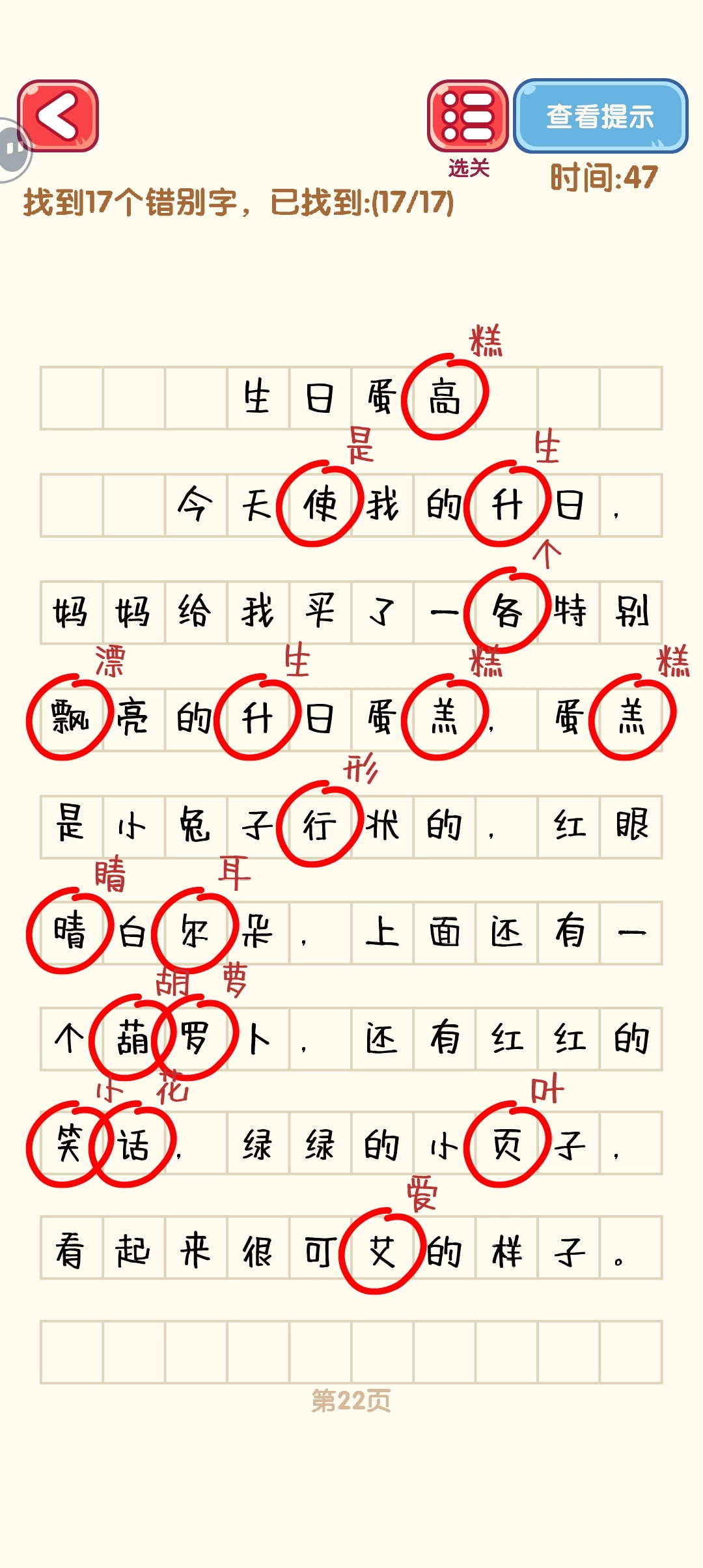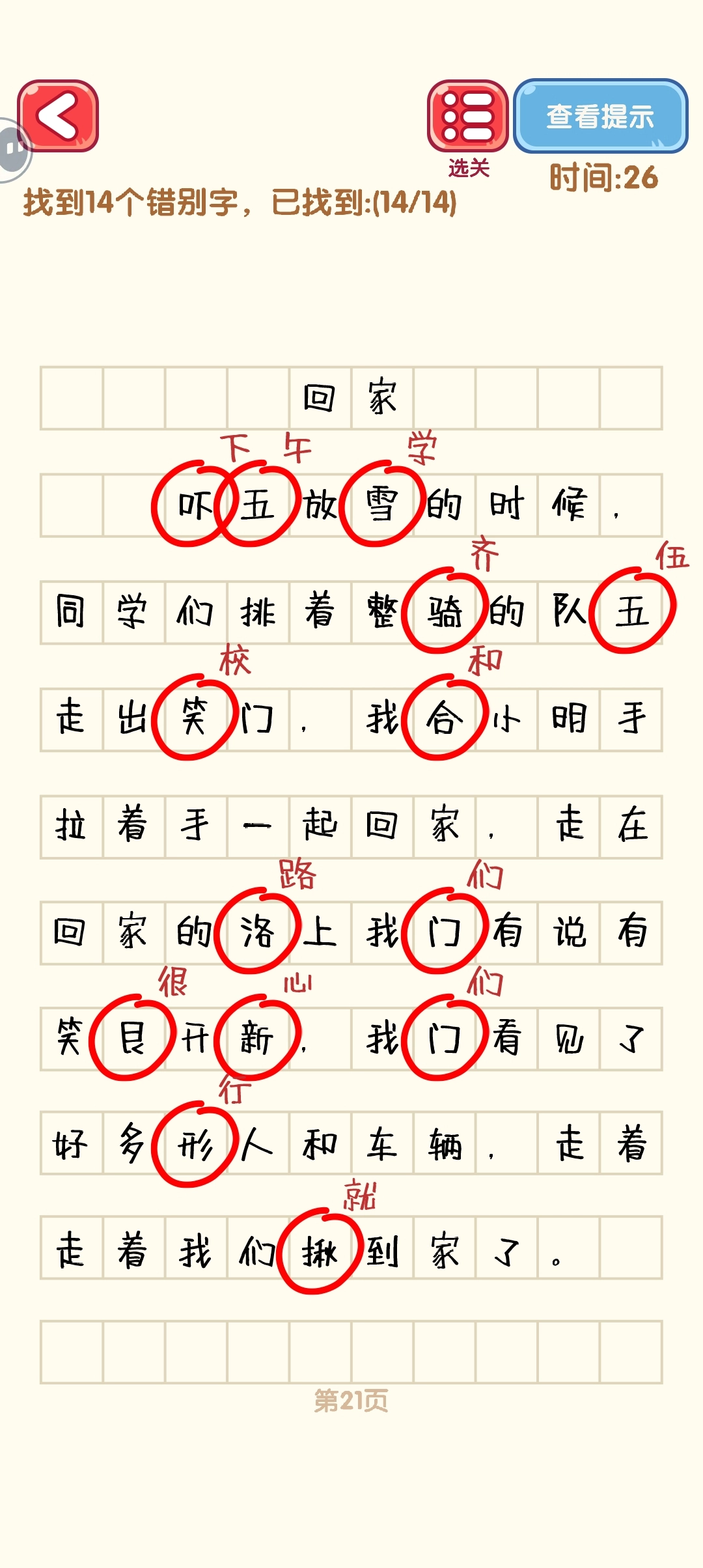 《消灭错别字》21 - 30关该怎么过呢?这是一款专注于寻找错别字的游戏,它凭借休闲娱乐的玩法以及简单易上手的操作,助力您规避错字。游戏操作十分简便,只需在给定的一篇文章里找出错误的那个字就能顺利过关。在此,为大家分享《消灭错别字》21 - 30关的通关攻略图,要是大家在过关过程中遇到问题,不妨来瞧瞧哦!