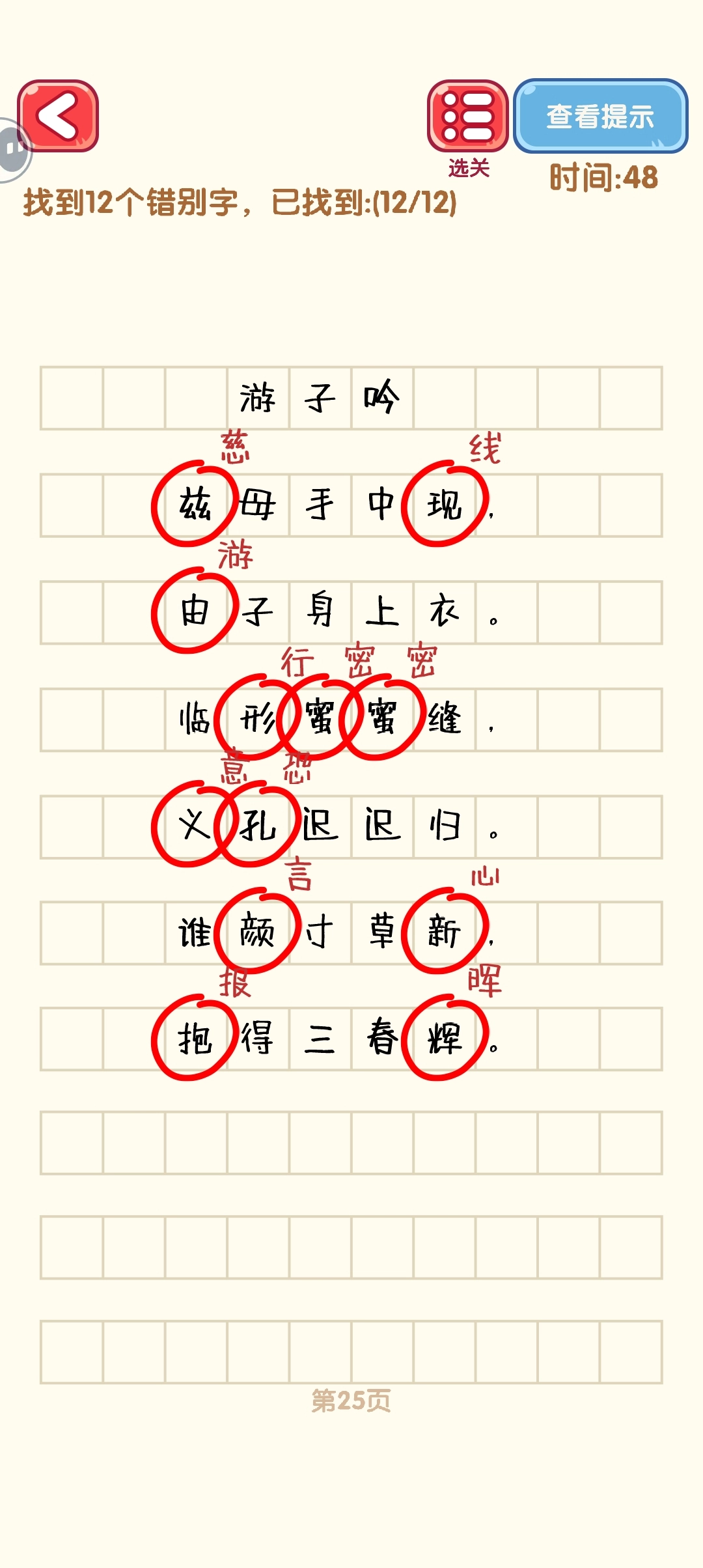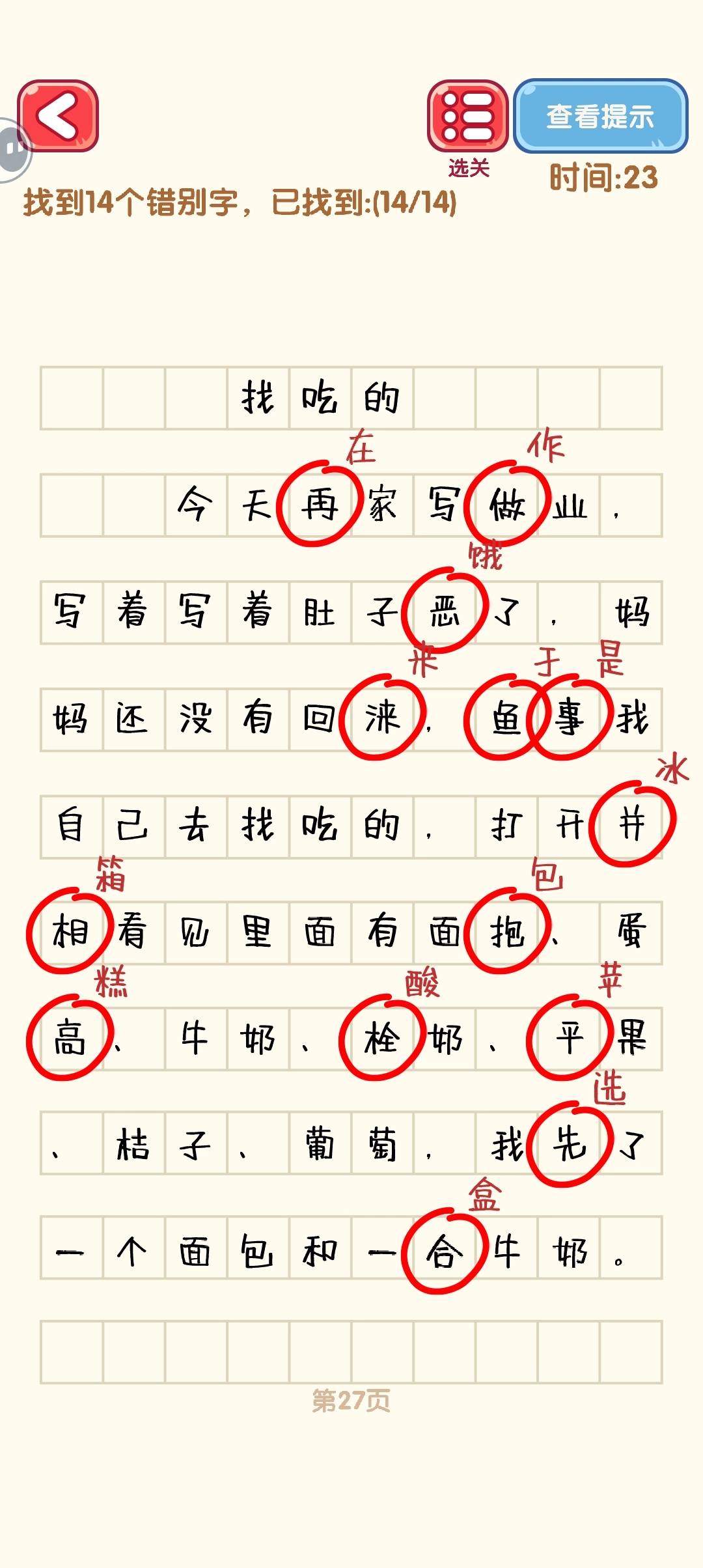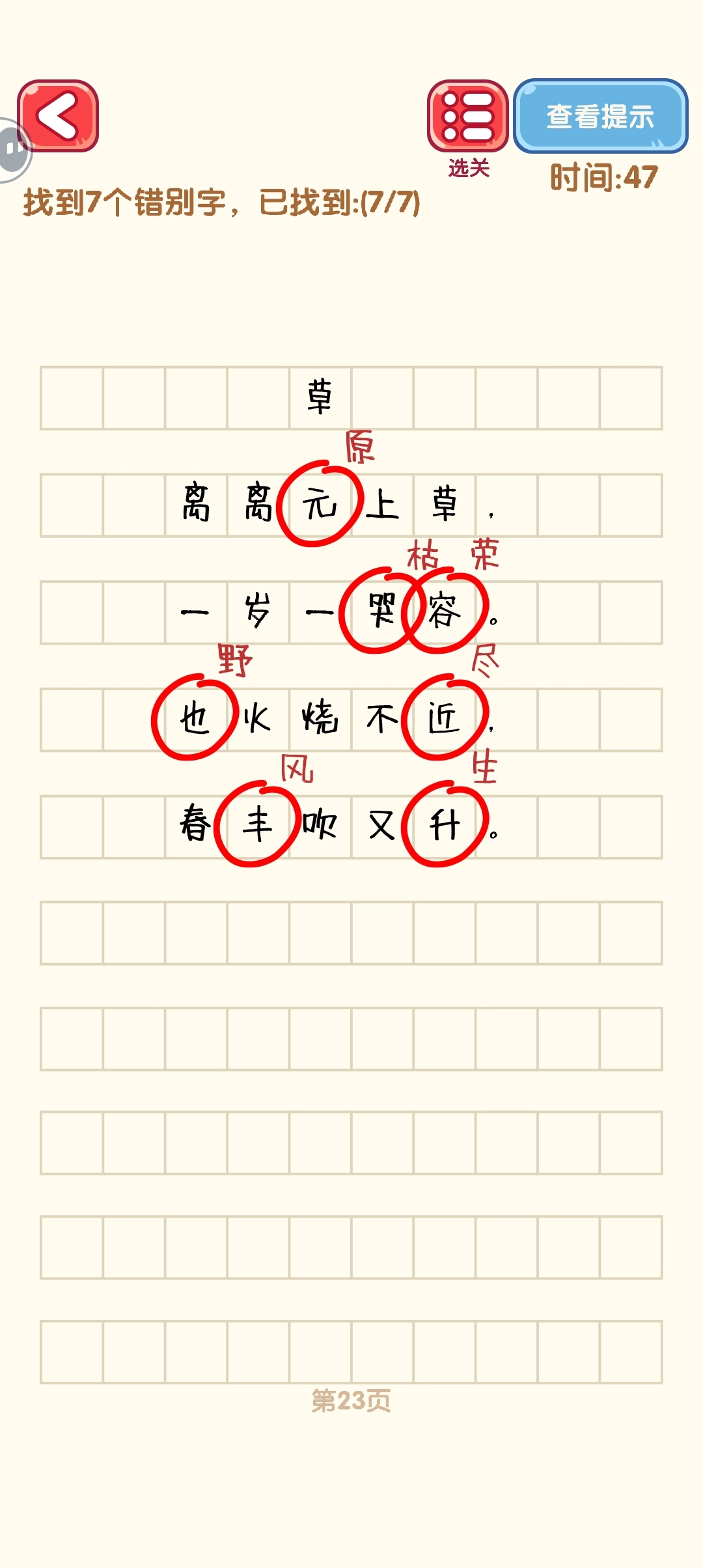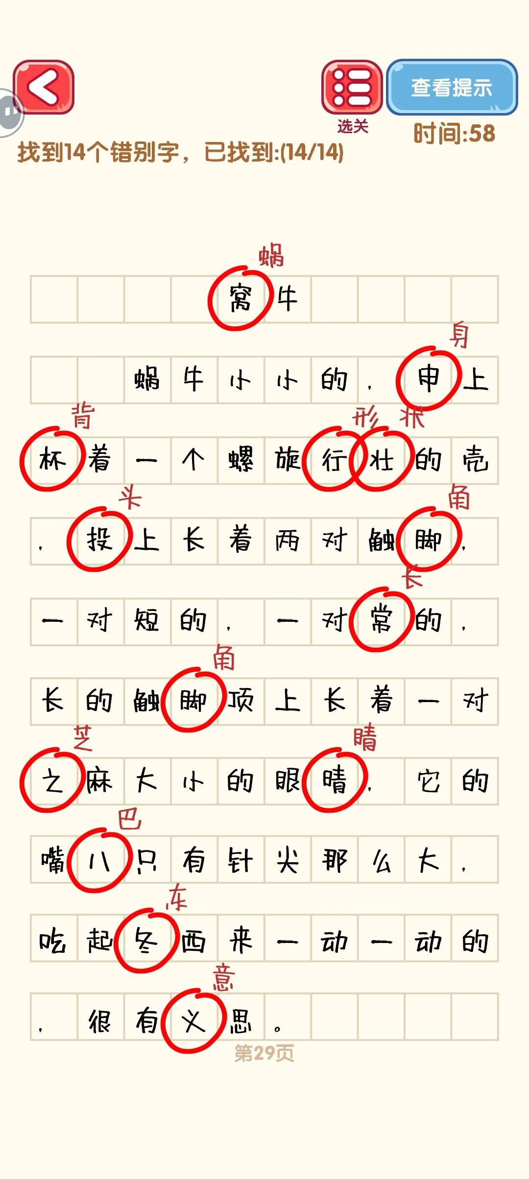 《消灭错别字》21 - 30关该怎么过呢?这是一款专注于寻找错别字的游戏,它凭借休闲娱乐的玩法以及简单易上手的操作,助力您规避错字。游戏操作十分简便,只需在给定的一篇文章里找出错误的那个字就能顺利过关。在此,为大家分享《消灭错别字》21 - 30关的通关攻略图,要是大家在过关过程中遇到问题,不妨来瞧瞧哦!