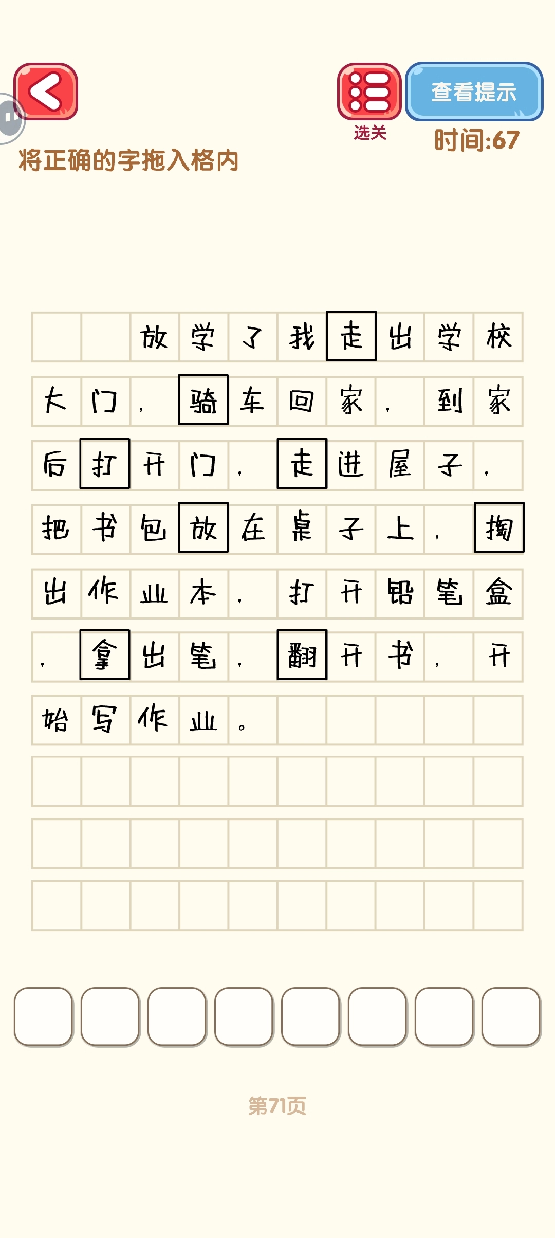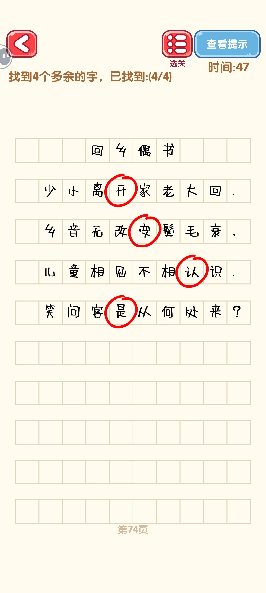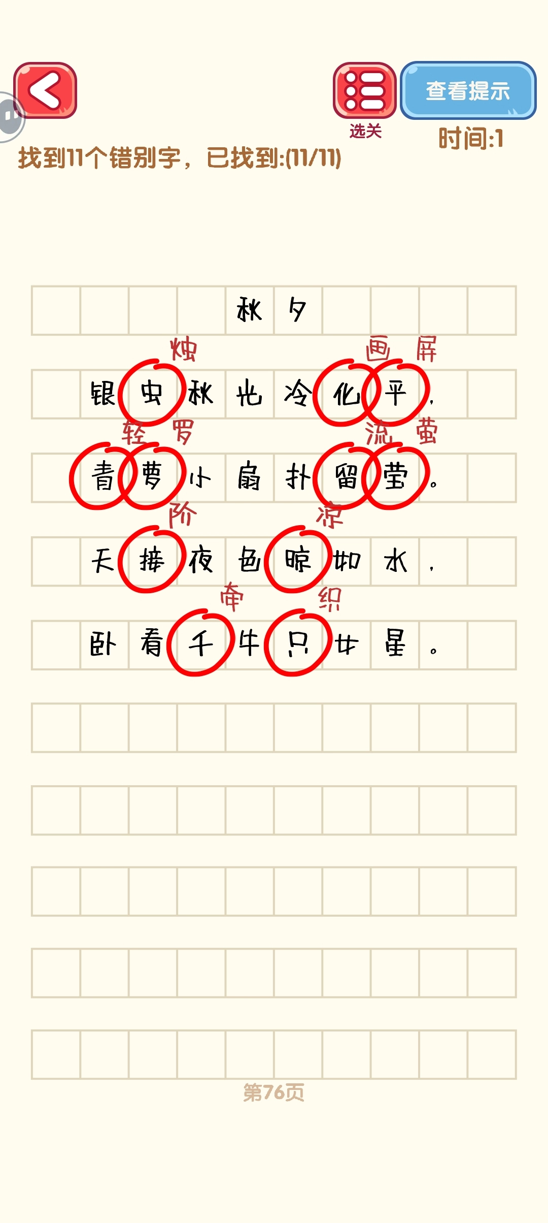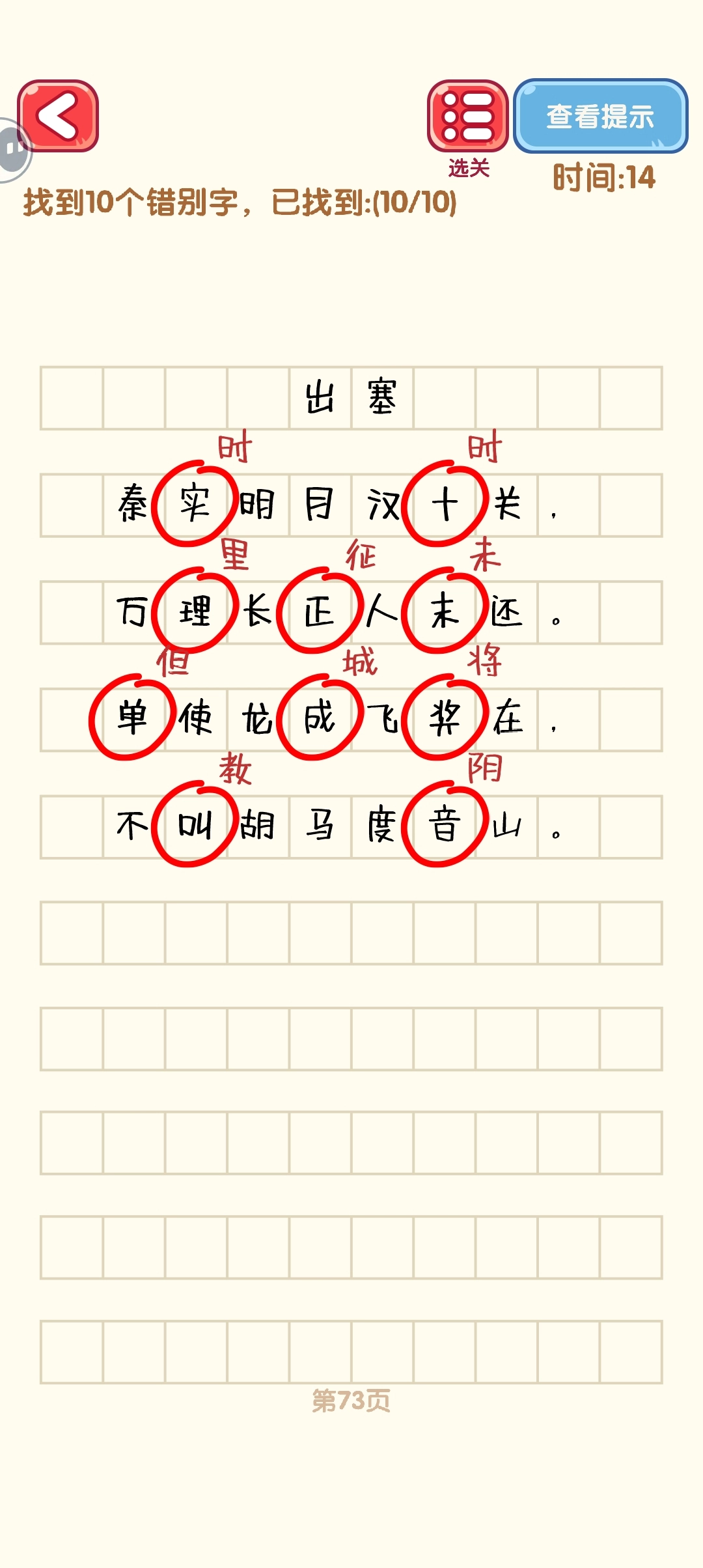 《消灭错别字》71 - 80关该怎么过呢?在消灭错别字的句子里,往往会存在不少错别字。你找到的错别字数量越多,能获得的奖励也就越丰厚。只有将所有错别字都找出来并改正,才能顺利通关。下面为大家分享《消灭错别字》71 - 80关的通关攻略图,要是大家在过关时遇到难题,不妨来看看哦!