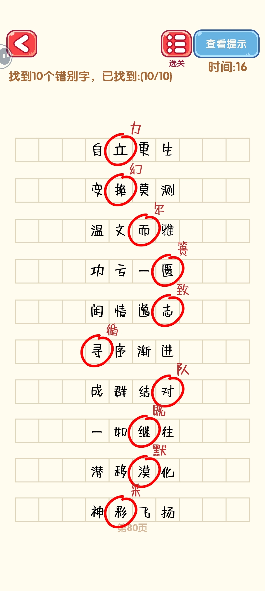 以上便是潮游速递站梳理呈现的《消灭错别字》71 - 80关通关攻略图啦。若想获取更多精彩内容,记得点击关注潮游速递站的更新哦!