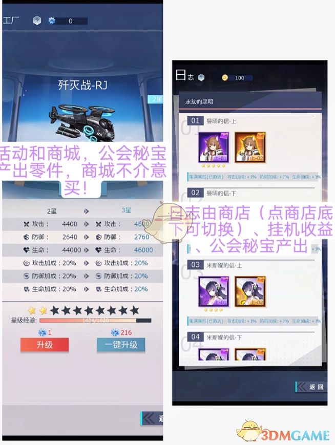 2、使用方式:优先对主C进行升级,随后再升级其他角色。金币任务所获报酬,可留存起来,在游戏推进遇到阻碍时使用。