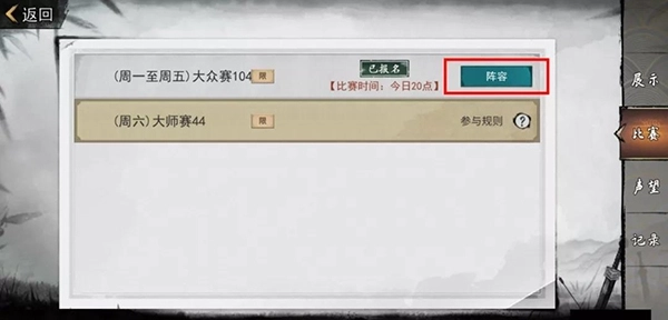2. 报名成功后,原本显示“报名”的按钮会变为“阵容”。
