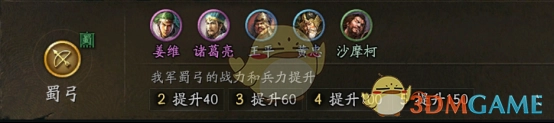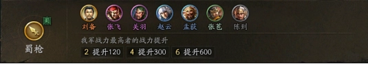 3、白毦兵:获得兵力40%的战力提升(张飞提升伤害);