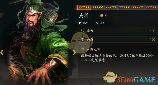 3、关羽4费:清除我军全体负面(防吴弓的火),同时对敌军7名武将造成少量伤害(主要作用是清对方抵御);