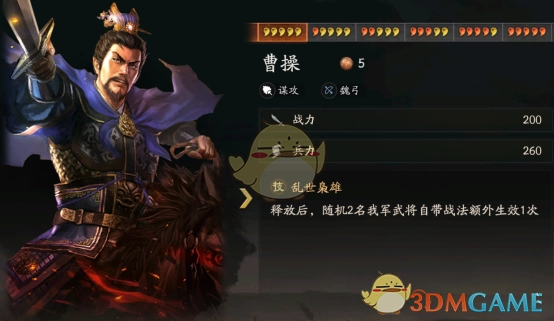 7、此外还有曹操可以备选,使随机2名武将战法发动2次,效果给到张飞就嗨翻天了。
