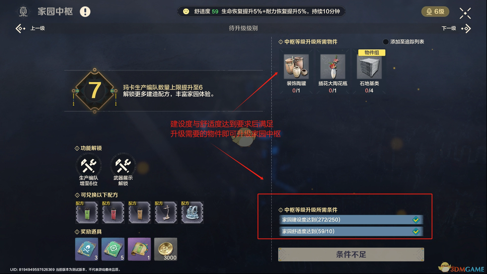 提升家园中枢等级的关键在于家园舒适度与建设度。当家园中枢等级提高后,相应能扩大可提升舒适度和建设度的建设范围。