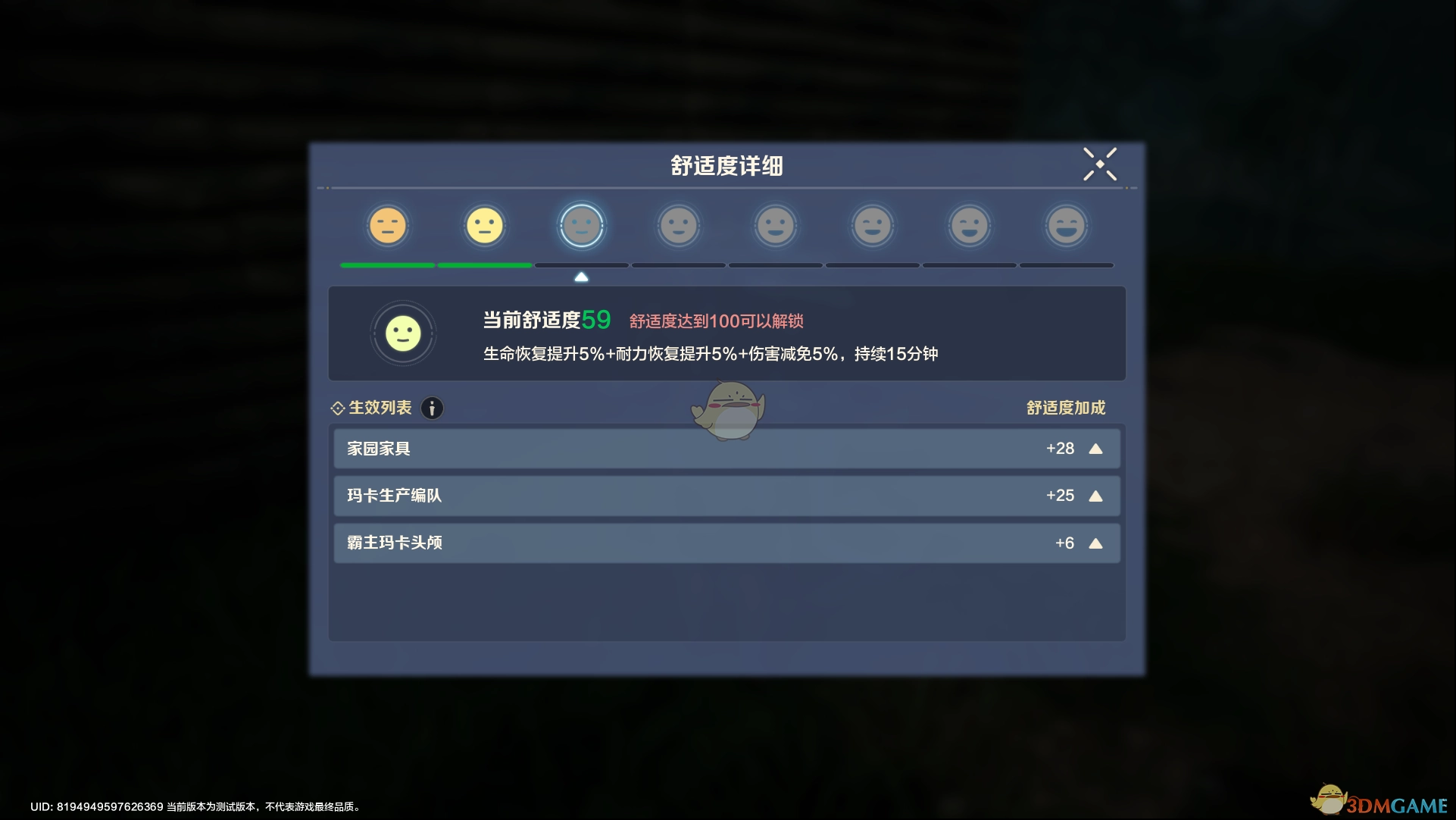 随着舒适度的提升还能解锁家园不同的增益效果。