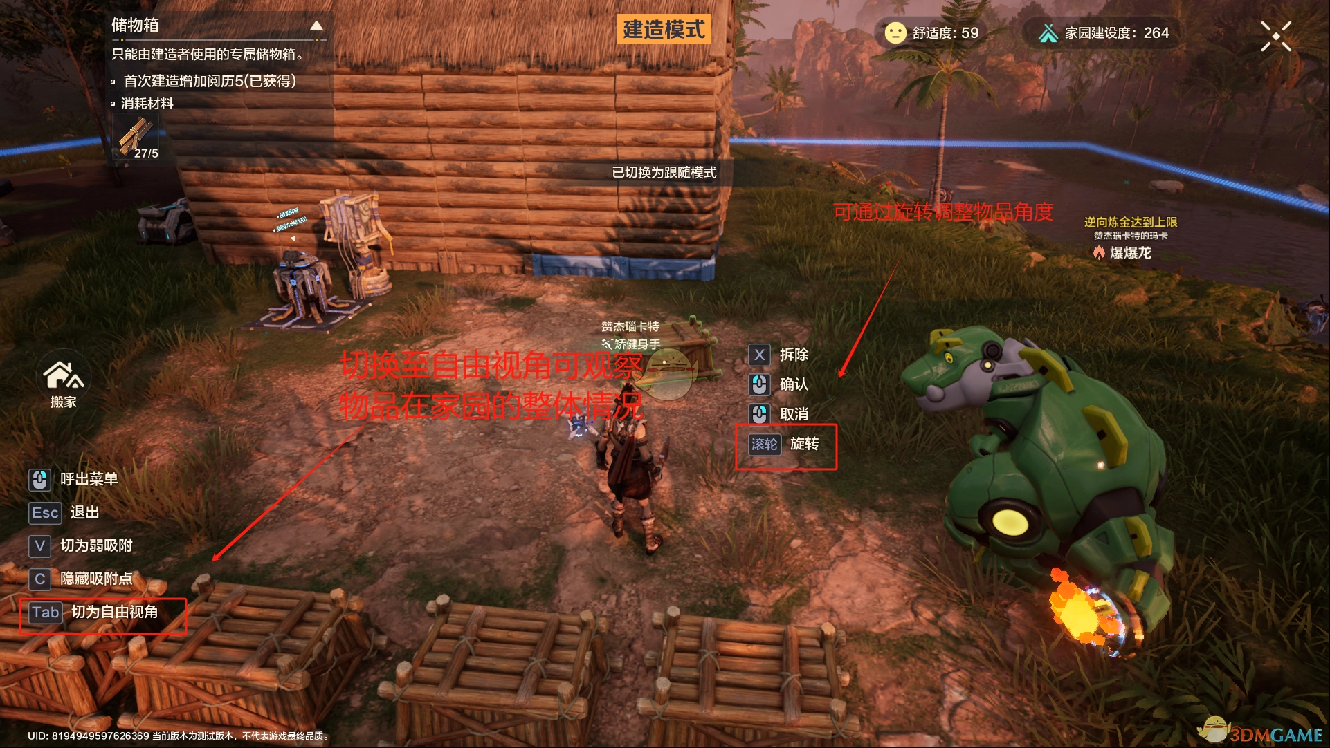在摆放家居物品时,玩家能够借助旋转按钮对物品角度进行调整,以满足自身对物品位置的满意需求。与此同时,玩家还可以切换到自由视角,从而查看物品在家园里的整体状况。