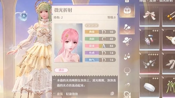 任务所涉及的服装为:漂浮套(发卡带有微光折射效果)