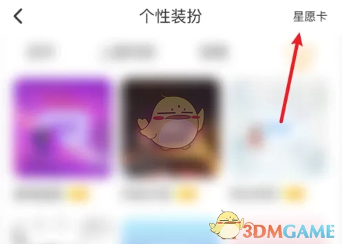 3、随后进入个性装扮界面,点击星愿卡。