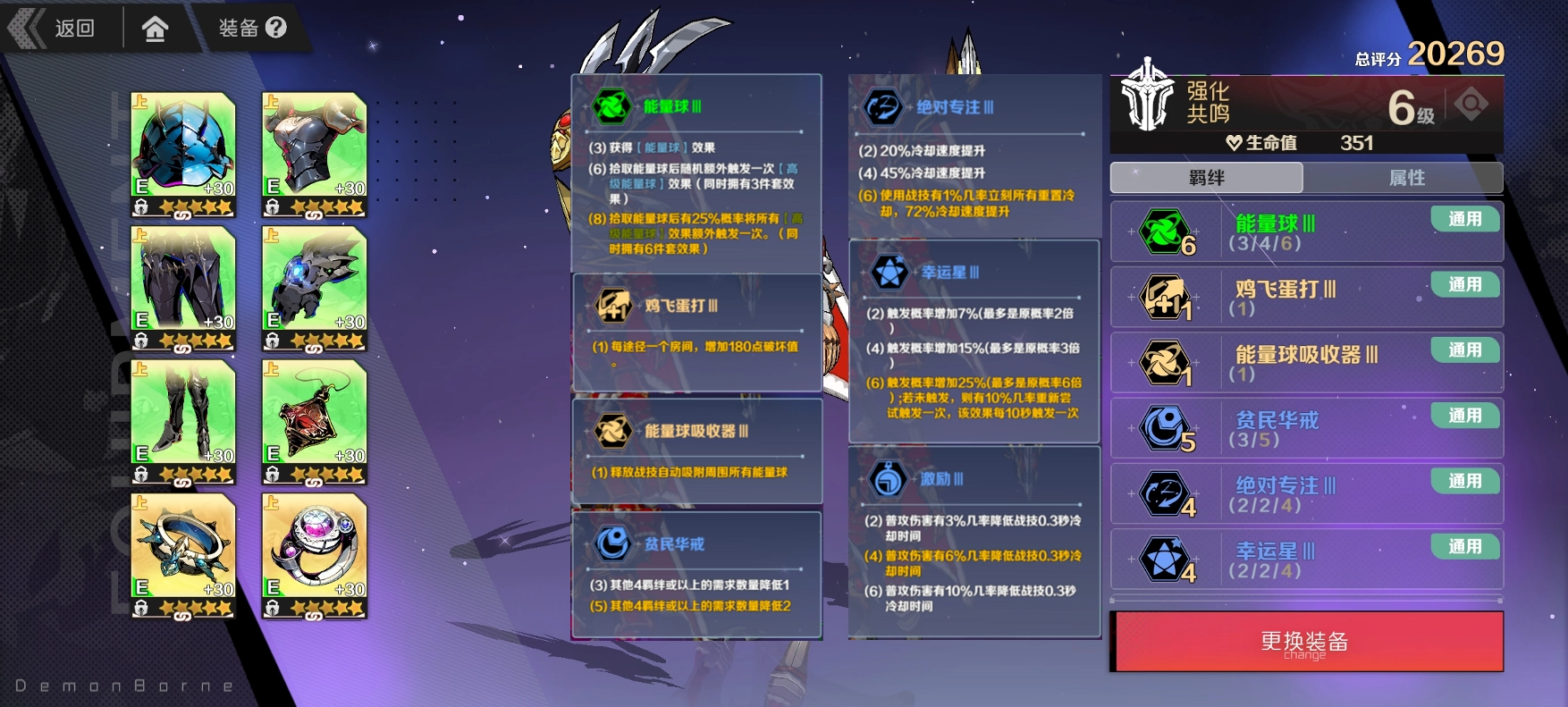6个能量球搭配鸡飞蛋打戒指以及能量球戒指,此外还有4个绝对专注、4个幸运星和2个激励。