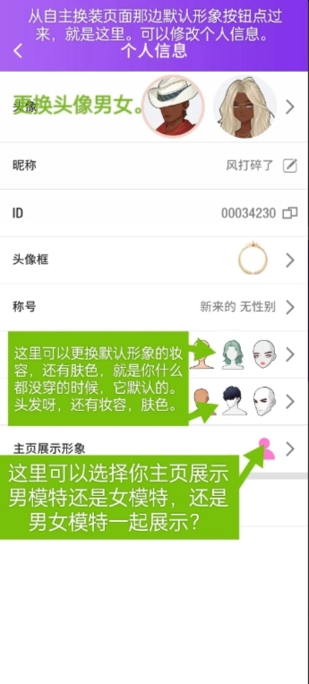 这里可以进行男女头像的更改,看板模特的替换,以及默认形象的妆容与肤色调整。