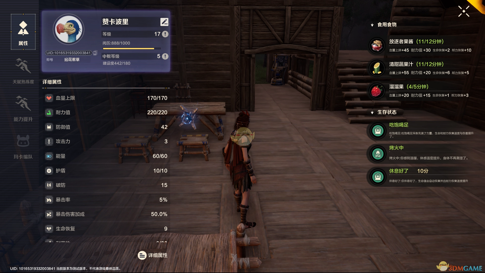 当处于下雨天,角色一旦被雨淋湿或者跳入水中,便会即刻进入潮湿状态,致使角色的耐力恢复速度下降。而当夜晚降临,又或是角色身处雪山等寒冷区域时,会进入寒冷状态。若食物消耗殆尽,角色就会陷入饥饿状态,伤害与回复速度均会降低。针对这些异常状态,可借助烤火、在房间休息、进食等一系列方式予以消除。