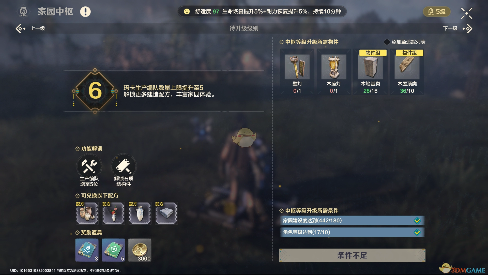 提升建设度,并非仅依照中枢提示进行放置,还能自行多添加一些像灯、桌椅之类的各类装饰。建设度越高,我们充分休息后所获得的增益Buff就越理想。
