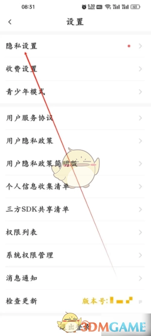 3、进入新页面后,选择【隐私设置】即可操作。