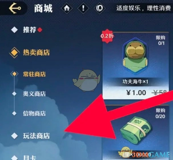 2. 在商城页面,点击左侧的玩法商店即可进入。