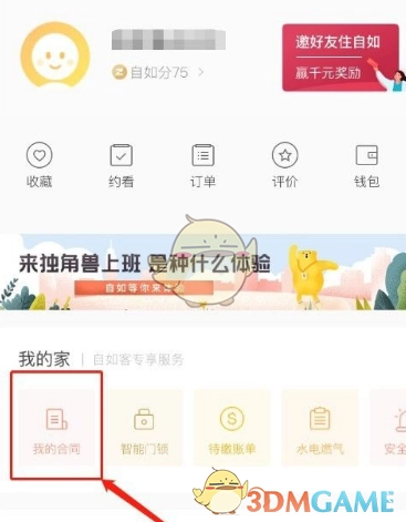 2、进入自如个人中心,接着在其中选择“我的合同”,具体位置如图所示。