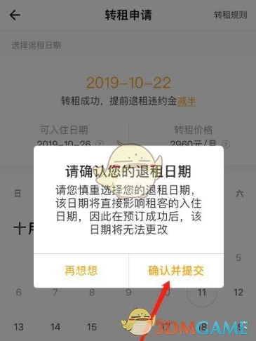 6、接下来选择退租日期,确认无误后提交即可,具体操作参照图示。
