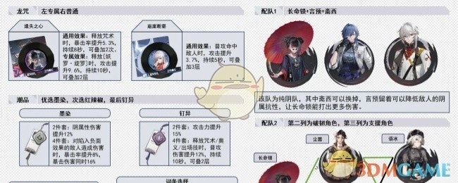 言预6命不仅能够降低敌人的阴属性抗性,还能赋予敌人负面效果,同时触发墨染4件套增加暴击的效果。至于剩下的那一名辅助,可选择“斋西”,如此一来便组成了纯阴队。