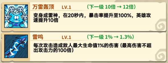 化身为雷神,20秒内,暴击率直接飙升至100%,同时英雄的攻击速度提升至原本的10倍。