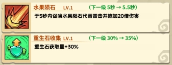 在5秒的时间内,召唤出水果陨石来取代雷击,同时造成20倍的伤害。
